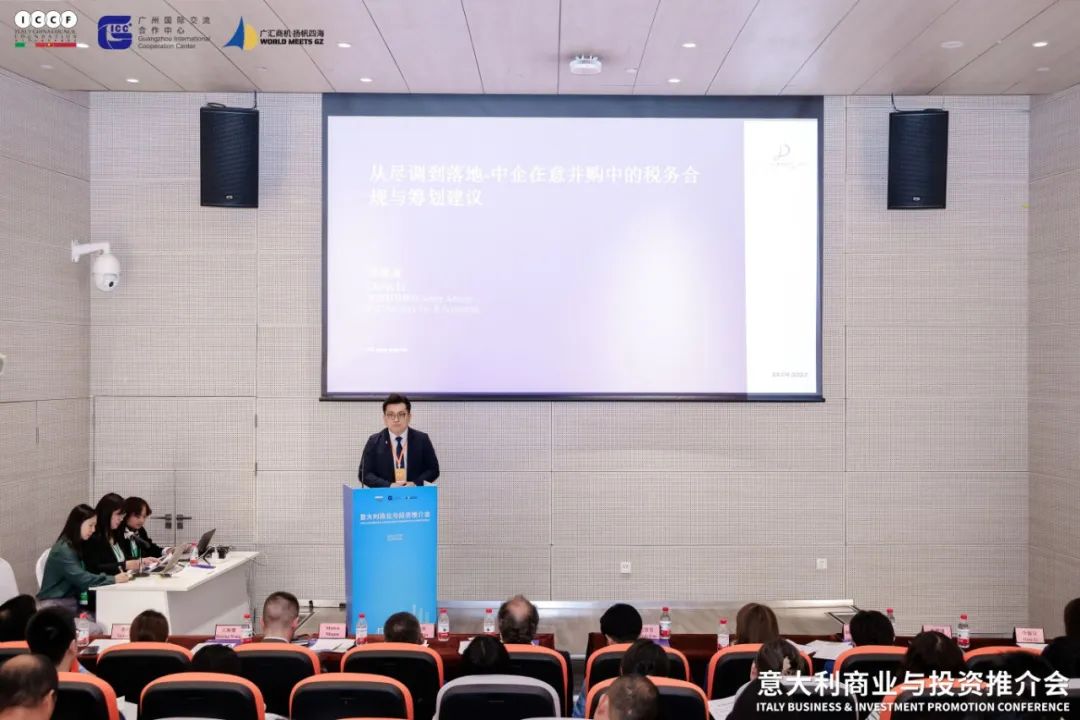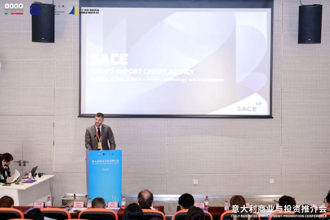 意大利出口信用机构 SACE中国和东南亚地区代表马泰奥・马贡系统介绍了适用于中国投资者和企业关于意大利合作的金融工具与解决方案,助力出海企业有效管理海外投资风险、增强融资能力。
