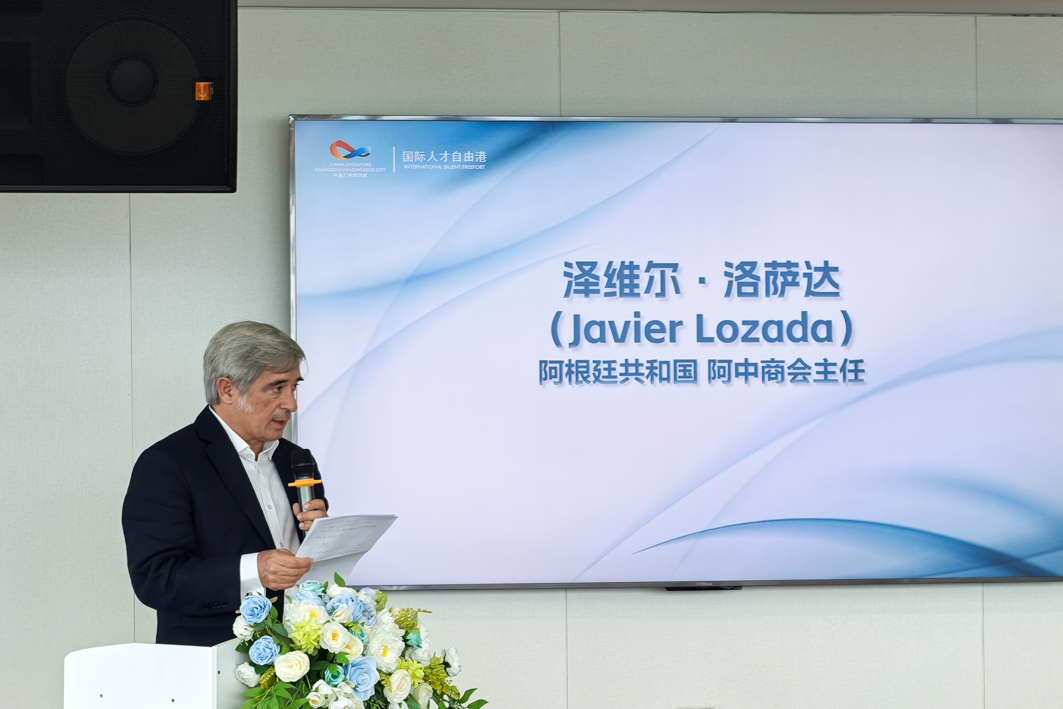 阿根廷代表:阿根廷阿中商会主任泽维尔·洛萨达(Javier Lozada)分享了阿根廷与中国合作的广阔前景。他着重探讨了在“一带一路”框架下,双方在经贸、科技、人文等领域深化战略协作的巨大潜力,期待携手在广州知识城开创互利共赢新局面。