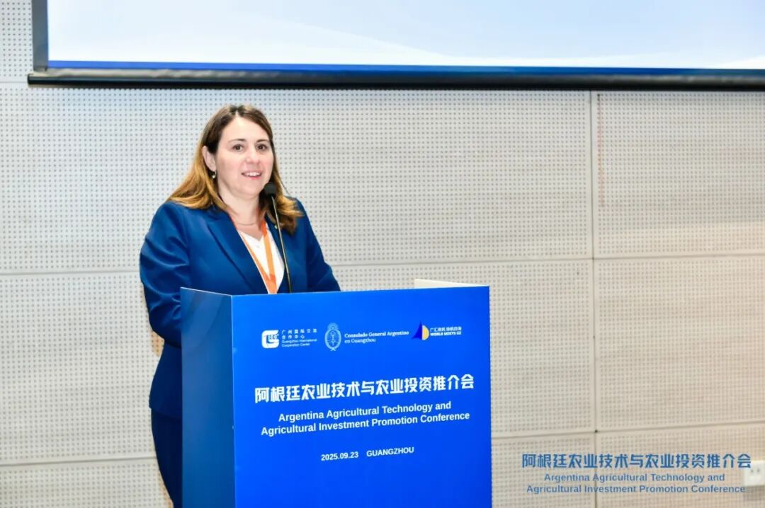 阿根廷共和国驻广州总领事时美善在致辞中表示,阿根廷不仅以足球、牛肉闻名,更是一个充满创新活力的国家,拥有发达的科研体系与农业科技实力。她强调,阿根廷在农业资源、农业技术等方面具备显著优势,欢迎更多广州企业赴阿投资兴业,共同推动农业可持续发展。