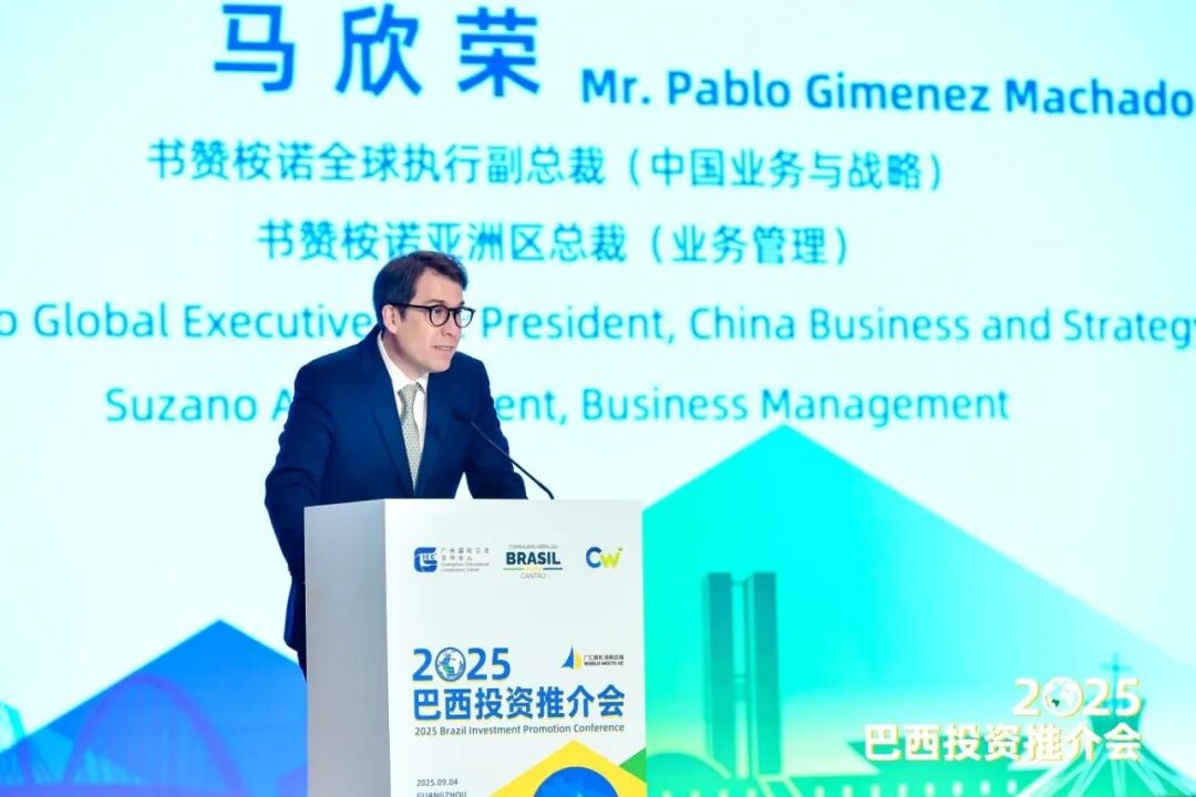 活动设置多个专题分享环节,涵盖巴西经济多个核心领域。书赞桉诺(Suzano)全球执行副总裁、亚洲区总裁马欣荣分享了集团在华发展历程与中巴合作经验,介绍集团作为巴西领先的浆纸企业,通过本地化运营、绿色金融创新及建设亚洲创新研发中心,推动中巴在低碳经济、生物基材料等领域的深度合作。他表示,中巴两国相互尊重、互利共赢,产业互补性强:巴西是中国在食品安全和能源等领域可靠的供应商,而中国则是巴西在机械设备、技术、电信和电商等领域值得信赖的合作伙伴。