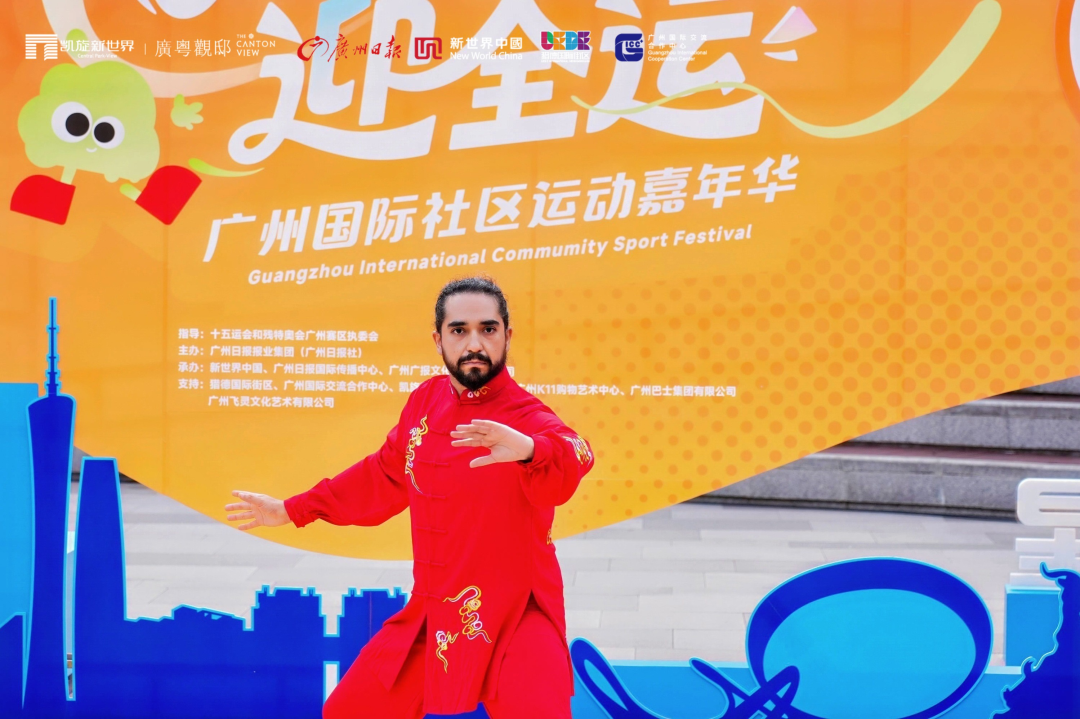 来自智利的博士生Rafael现场表演了中国功夫。他在广州即将完成自己的中医药博士学位,Rafael说道:“我热爱中国功夫,我很关注全运会,全运期间我会去现场观摩武术比赛。两年前我不太喜欢广州,因为太热了,但我现在非常爱广州,因为这里的美食太好吃了!”