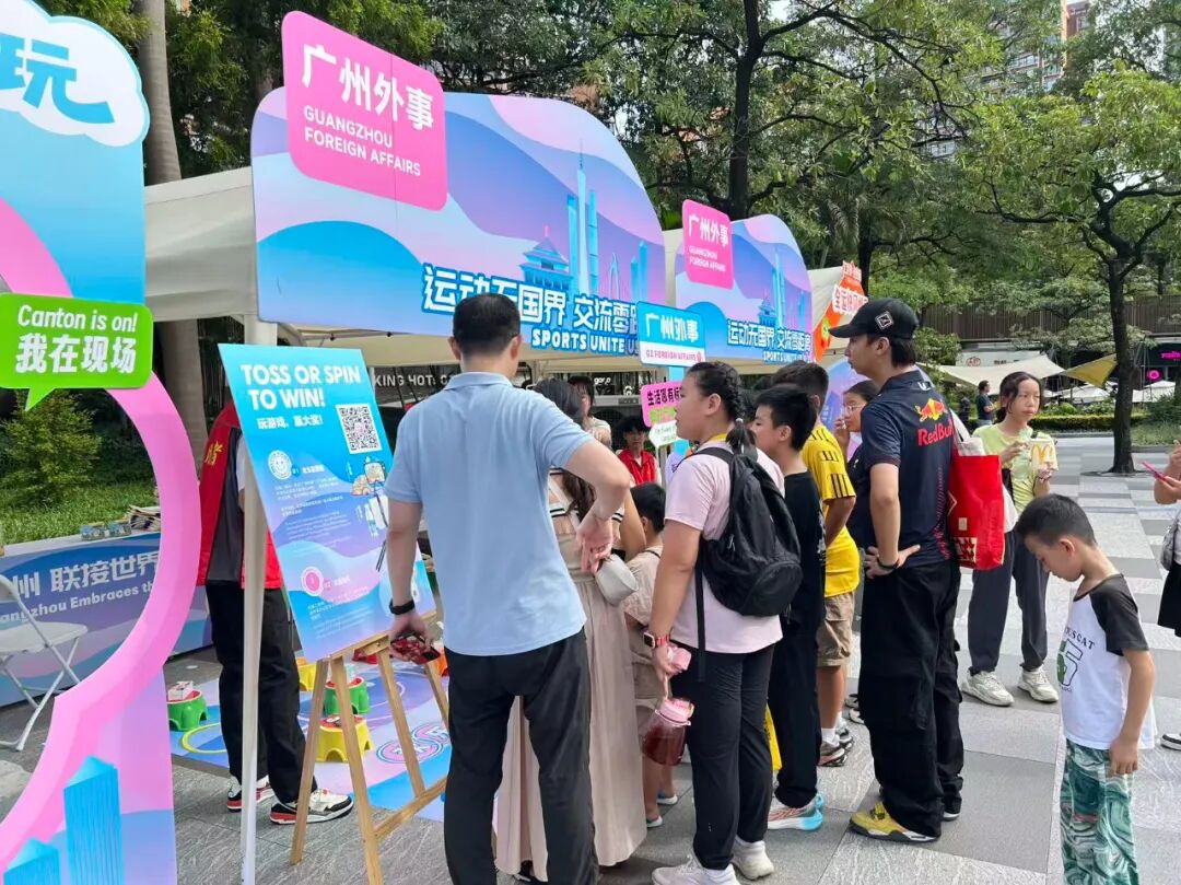 中外街坊打卡“湾区好运”集市“广州外事”互动游戏摊位