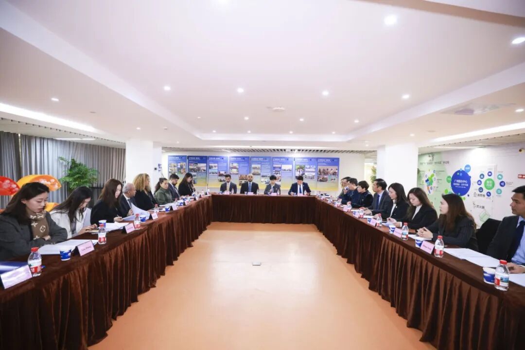 广东省商业联合会国际部部长付鹏举、广东省制造业进出口协会执行会长兼秘书长殷晓斌、中国民营经济国际合作商会园区专业委员会副秘书长邱伯刚分别发言,介绍了各自机构的职能与资源优势。与会各方围绕组织经贸活动、助力企业出海、加强双向团组互访等具体合作方向进行了深入探讨。